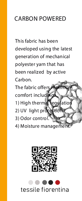 QUESTO TESSUTO È STATO SVILUPPATO UTILIZZANDO L’ULTIMA GENERAZIONE DI FILATI DI POLIESTERE MECCANICI REALIZZATI CON CARBONIO ATTIVO. IL TESSUTO OFFRE IL MASSIMO COMFORT INCLUDENDO: